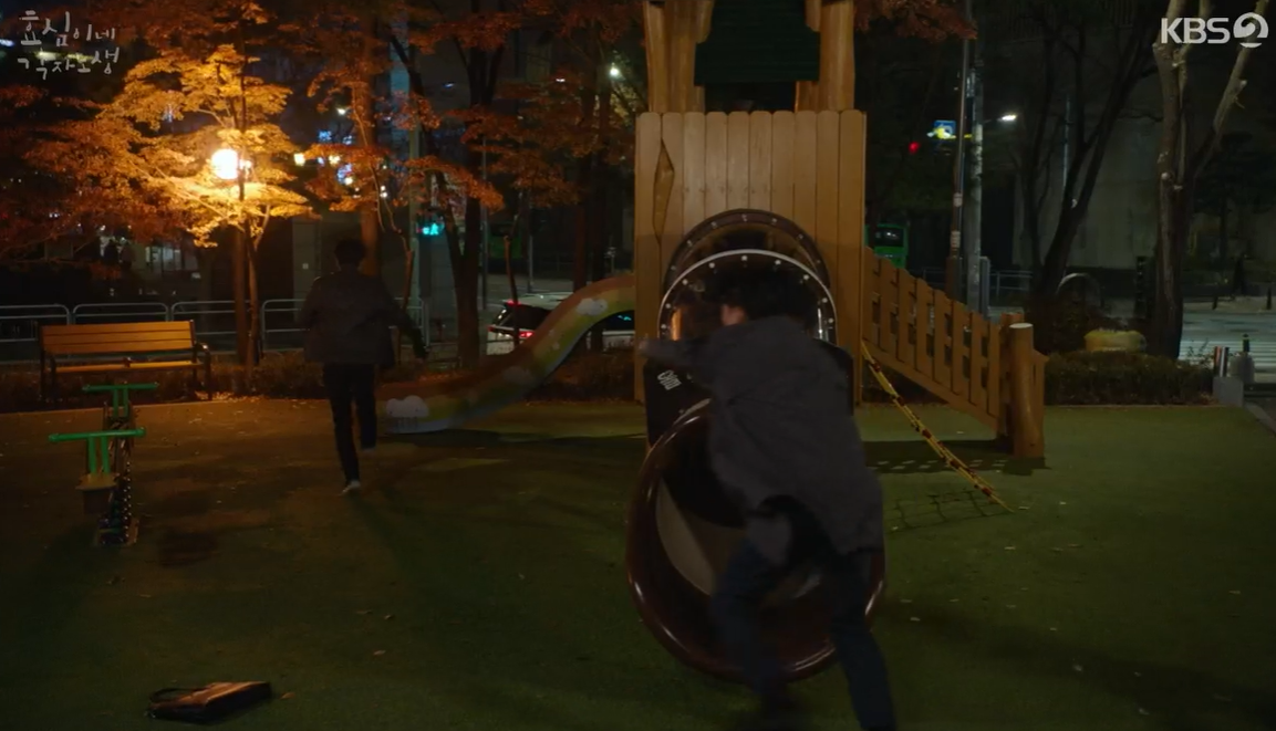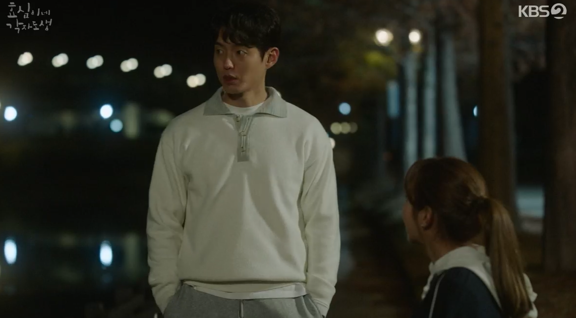 그 시각 태호는 대표님 마시지를 탈출해 산책을 하다가 효심을 발견하고 곁에가 앉습니다.