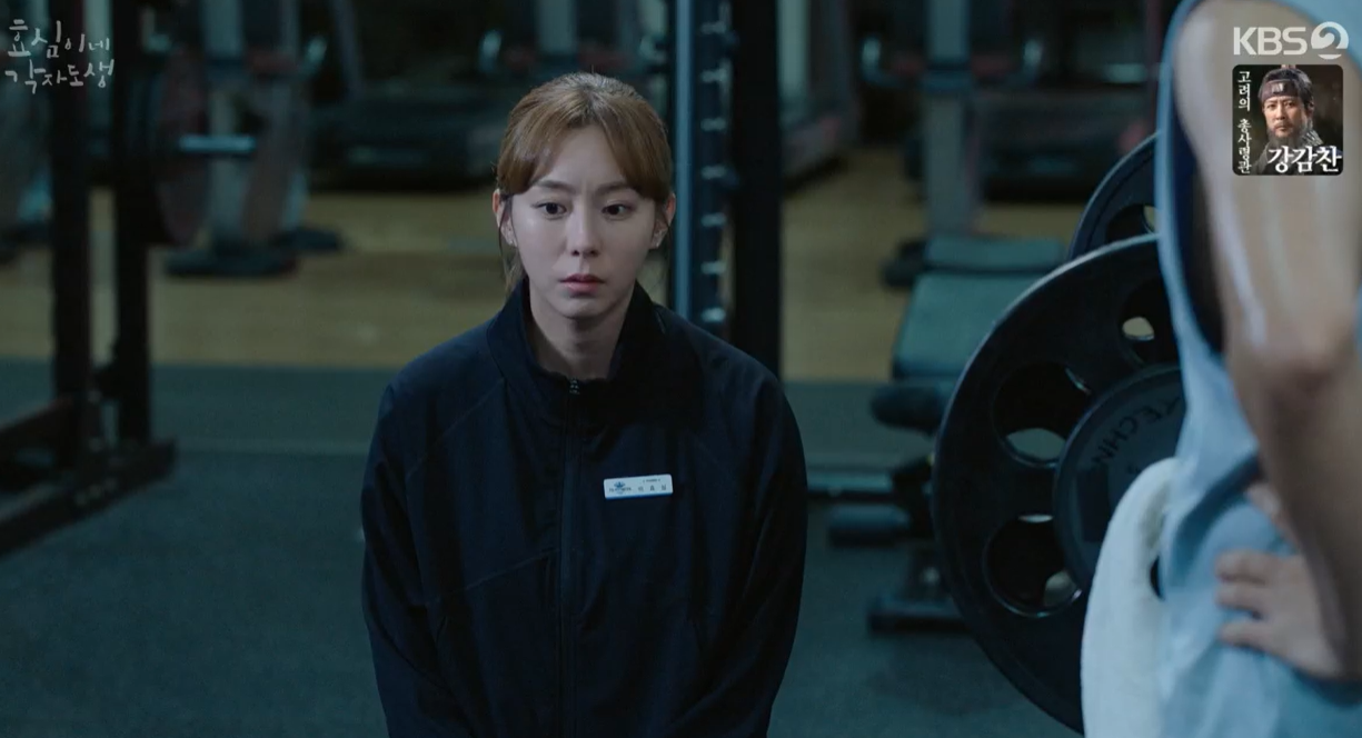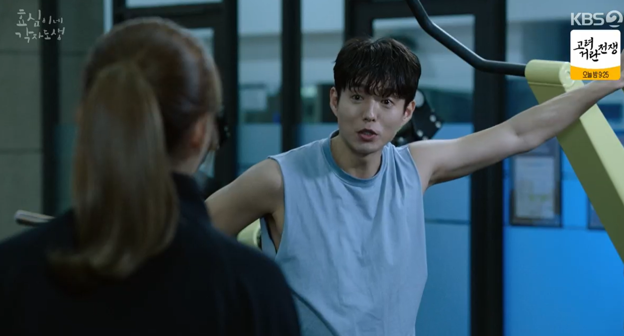 다음날 효심은 태호 PT시간에 막상 부딪혀 보니 쉽지않다며 이렇게 하는 것이 잘하는 것인지 모르겠다고 하자 태호는 마음약해지면 안된다며 충고해 줍니다.