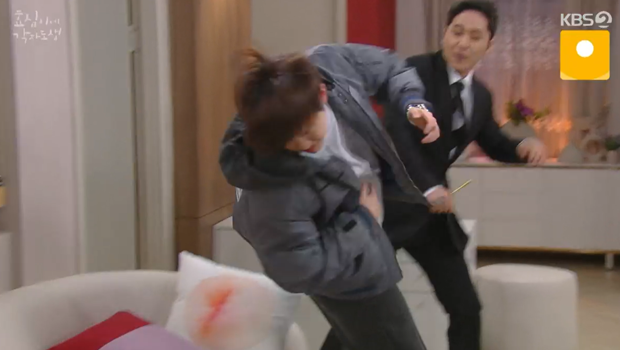 효심이 나간후 자신이 아무리 말려도 진정이 되지 않자 효성도 큰소리를 냅니다.