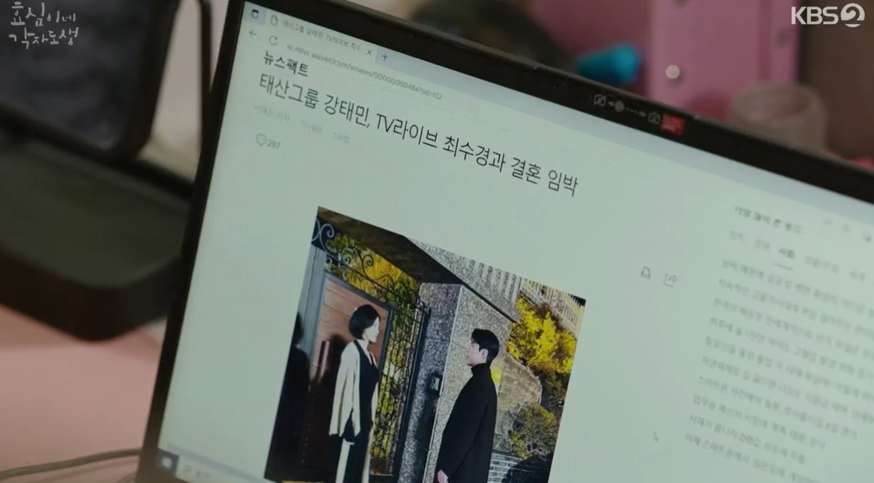 태민의 마음이 어떤지는 관심도 없이 최수경은 결혼을 하게 된것이 만족스러운듯 좋아합니다.