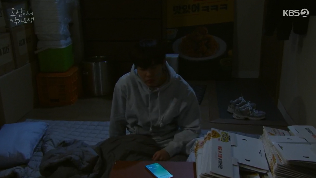 결국 정미림의 뜻대로 고시원으로 오게된 효준. 정미림은 효준에게 마지막 시험 앞두고 왜 꼬장이냐며 무서워서 그러냐고 아픈곳을 찌릅니다. 미림은 변호사까지 그만두고 눈치밥먹어가며 연기를 준비하는 자신의 처지를 이야기 하며, 이렇게 아무것도 이루지 못하고 자신이 꿈을 포기하게 될까봐 무섭다고 이야기 합니다. 처지는 다르지만, 벼랑끝에 서서 각자의 꿈을 쫒는 모습은 비슷한 두사람.