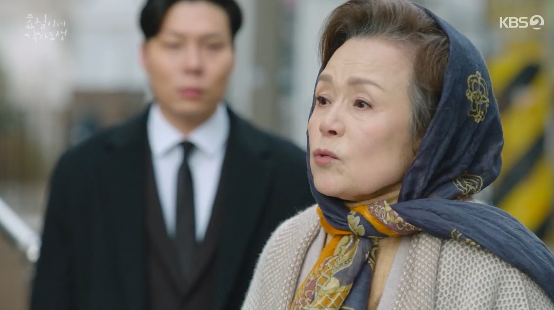 그때 다행히 나타난 순찰차. 경찰이 다가와서 길을 막고 있으면 안된다고 이야기하는 바람에 풀려난 최명희. 염이사가 어머니를 모시고 가려고 한다고 거짓말을 해보지만 최명희가 아니라며 경찰서에 가서 자신이 사정을 이야기 하겠다고 말하고 경찰관은 모두 경찰서로 가자며 최명희를 경찰차에 태우고