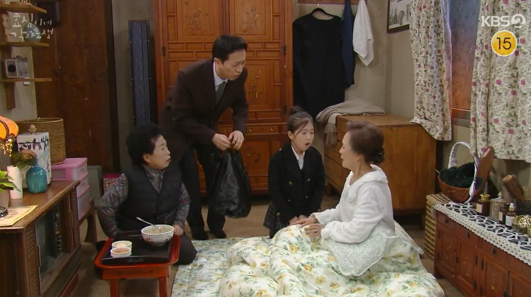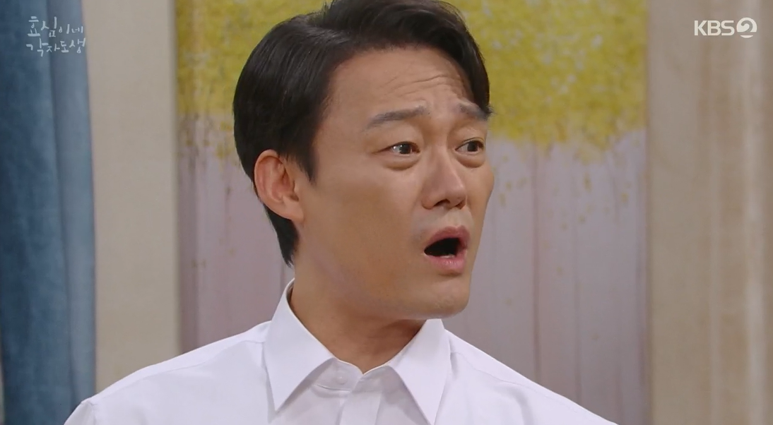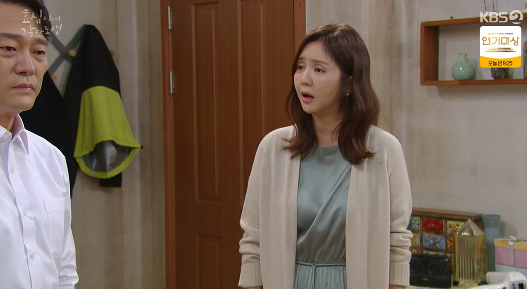 효준이 10년 매달린 변호사 시험을 그만둔다고 해서 선순은 머리까지 싸매고 앓고 있는데 무심한 효준은 눈치없이 계란 후리이를 해달라며 투정을 부리다가 고무장갑으로 두들겨 맞습니다.
