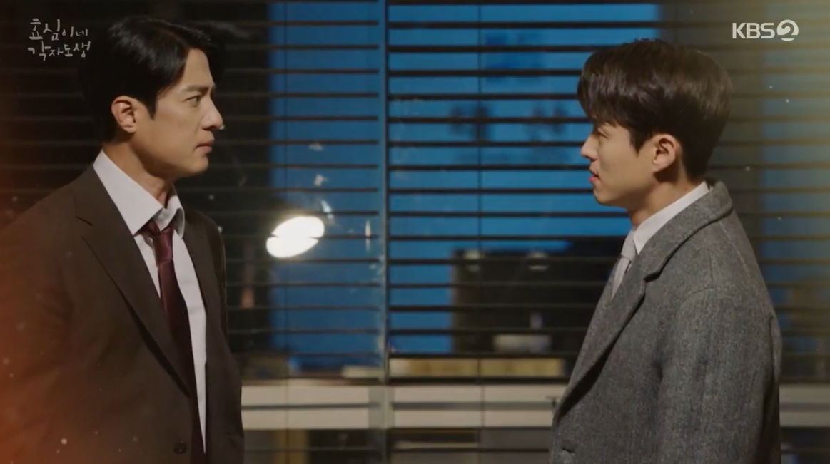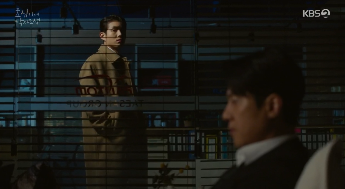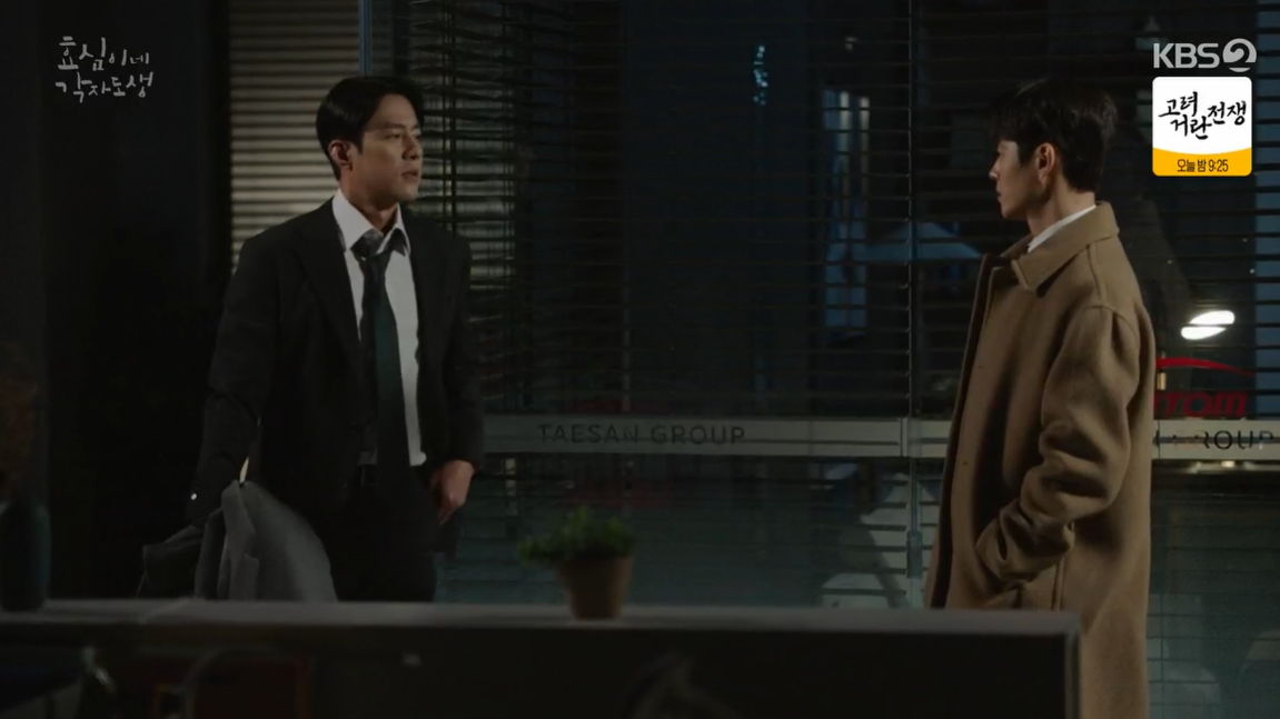 부모님 사고에 대한 메일을 확인하기 위해 늦으시간 회사로 복귀한 태호는 사무실에 앉아 생각에 잠겨있는 태민을 보게 됩니다.