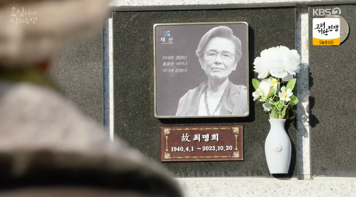 그 시각 태호를 보고 고민에 빠져 있던 최명희는 결심을 한듯 숙향이 만들어 놓은 자신의 납골당 앞에서 이사들을 만나 자신이 살아있음을 밝히고 태호와 효심을 지켜주기 위해 숙향에게 맞서기로 결심한듯 다른이사들까지 모아 힘을 모아달라고 이야기 합니다.