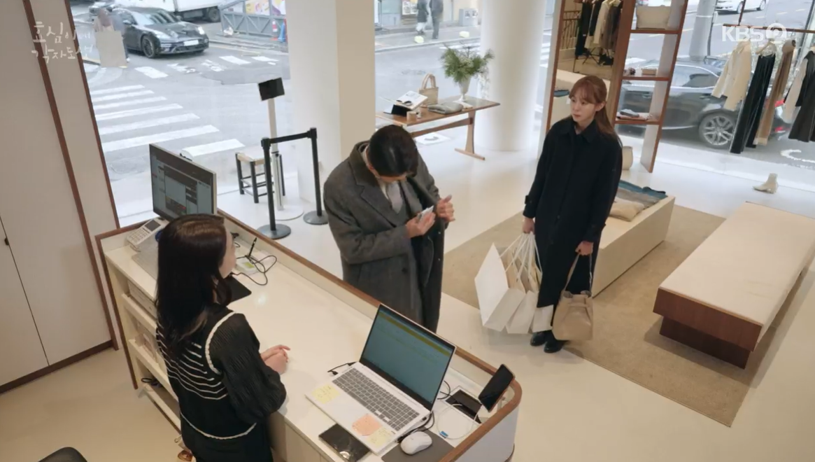 갤러리에서 부모님께 효심을 인사시키고 나온 태호는 치마입은 효심에게 다른 옷을 추가로 선물해 줍니다.
