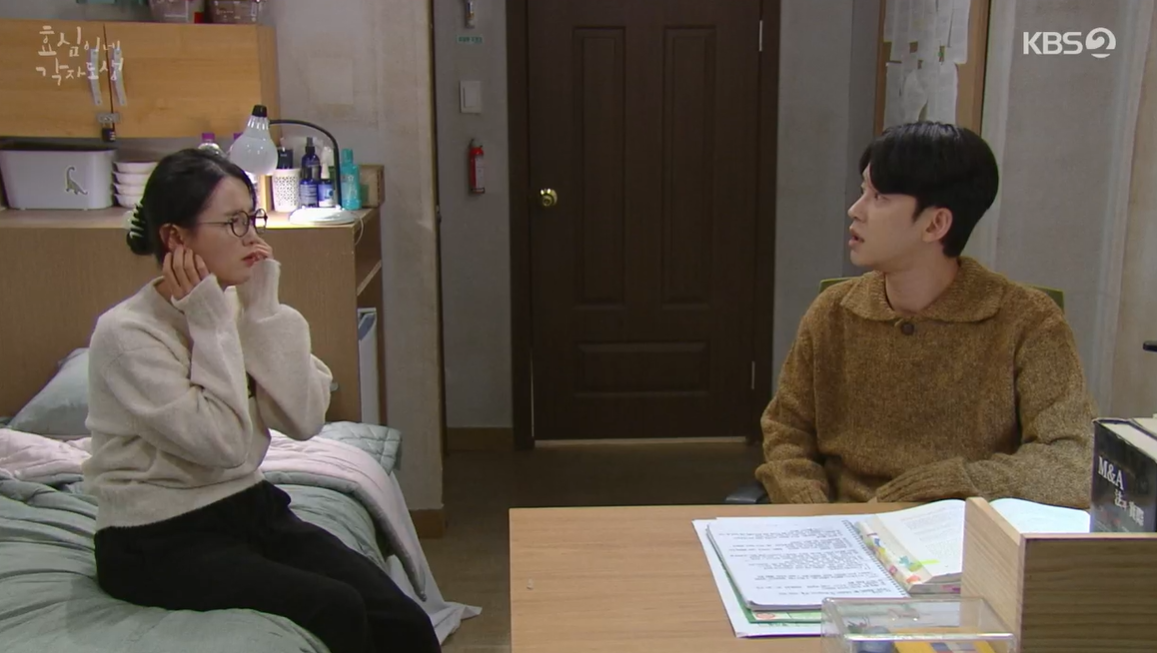 전날 술에 취해 효준에게 키스를 한 정미림. 하지만 다음날 아무것도 기억하지 못한채 해장을 하자며 효준방을 찾고 효준은기억을 못하냐며 미림이 효준의 입술을 훔쳤다고 말하며 황당해 합니다.