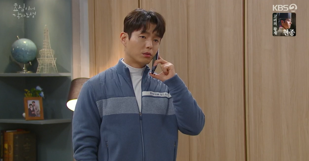 통화를 마치자 휴지와 과일을 사들고 온 큰오빠, 효성.