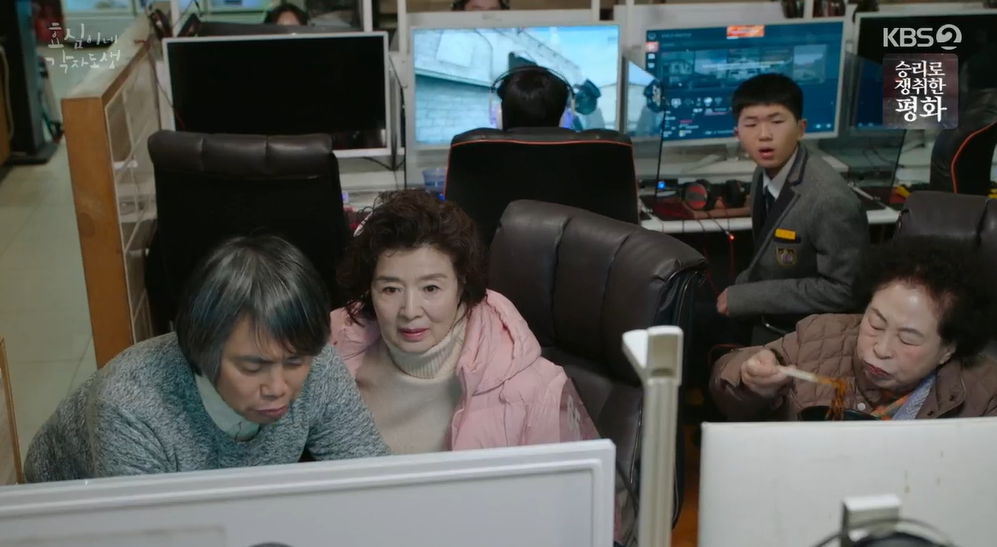 엄마가 카페를 한다는 말에 효심이 전화를 걸지만 선순은 상관말라며 끊어버리고 혼자힘으로 인터넷 위생교육도 신청하려고 피시방을 찾습니다. 피시방문화를 모르는 끝순할머니는 음식을 먹는 아이를 나무라며 짜장면을 뺏어먹고 싸움이 나려는데 마침 피시방 주인아저씨가 나타나 싸움을 말리고 선순을 도와줍니다.