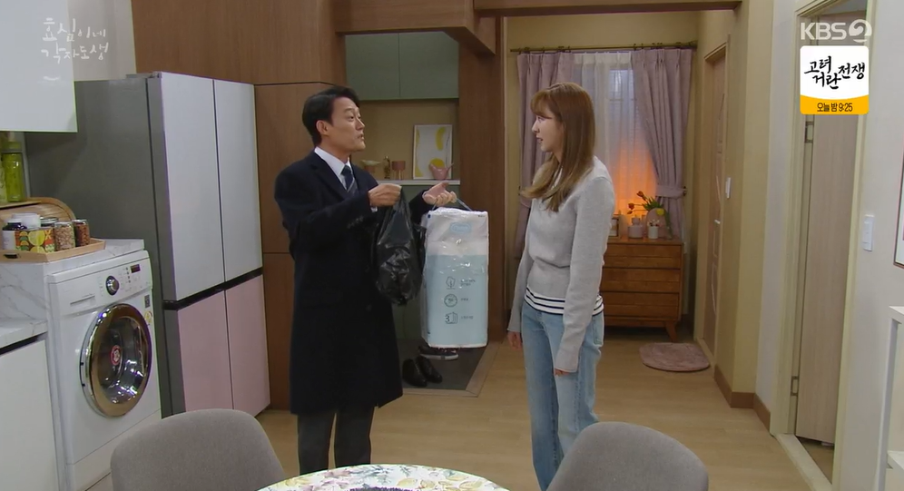 효심이 재벌3세인 태호와 연얘 하는 것을 안 희주는 반찬을 잔뜩 싸들고 와서는 효심에게 태호와 결혼할 거냐며 능력있다고 효심을 치켜세웁니다.