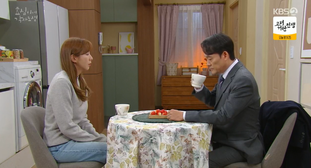희주가 효심을 만나 태호이야기를 한 것을 안 효성은 퇴근하자마자 희주에게 화를 냅니다. 결혼하기도 전에 왜 벌써부터 설레발에 효심에게 부담을 주냐고 회를 내는데 부모님 다툼을 엿든던 루비는 끼어들었다가 혼이 납니다.