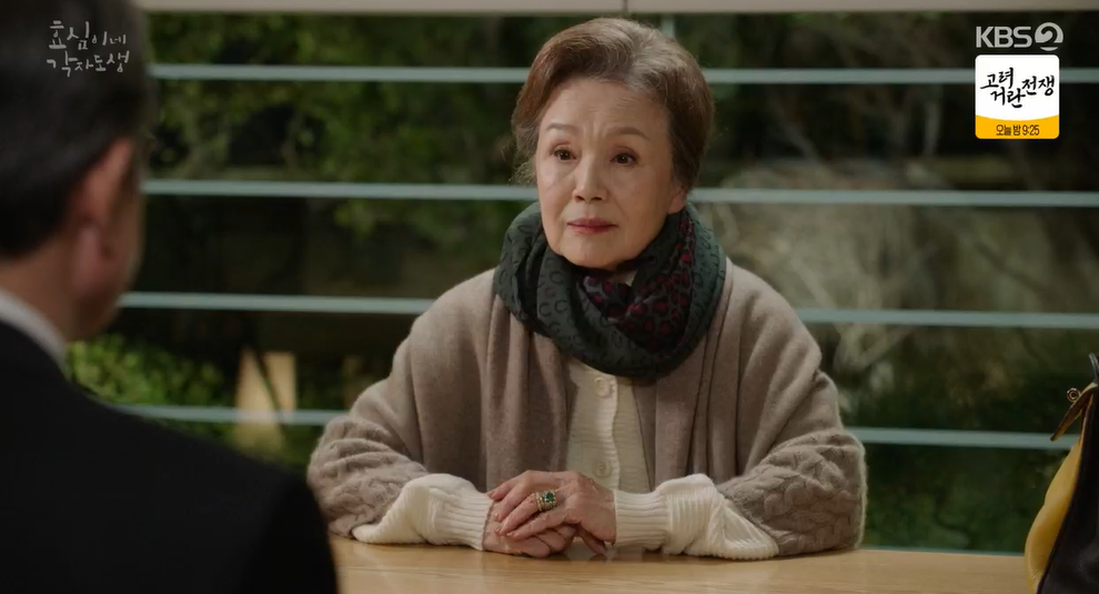 효도는 옷을 차려입고 친구들을 만난다고 나갑니다. 태희는 효도에게 자신은 이제 태산그룹과 상관이 없다며 한번더 못을 박는데 효도는 투자 유치를 하려고 친구를 만난다는 핑계를 대면서 나갑니다.
