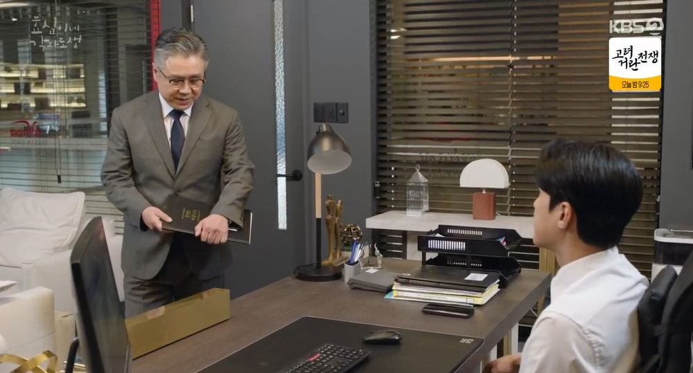 염전무는 태호를 모함할 자료를 만들어 태민에게 줍니다. 태호가 장학기금을 해외페이퍼회사로 빼돌렸다가 자금세탁후 다시 한국으로 들여와 그돈으로 회장자리를 노리고 회자 지분을 확보한다고 보고하는 염전무. 태민은 반신반의 하며서 자료에 대해 의구심을 제시하고 변호사에게 검토를 시키는데 변호사조차 염전무의 사주를 받은 사람.