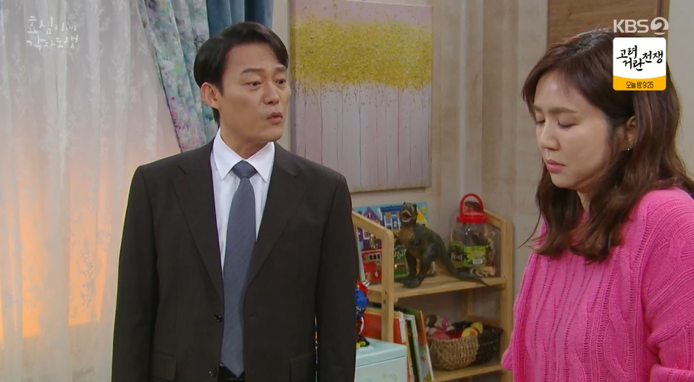 희주가 효심을 만나 태호이야기를 한 것을 안 효성은 퇴근하자마자 희주에게 화를 냅니다. 결혼하기도 전에 왜 벌써부터 설레발에 효심에게 부담을 주냐고 회를 내는데 부모님 다툼을 엿든던 루비는 끼어들었다가 혼이 납니다.