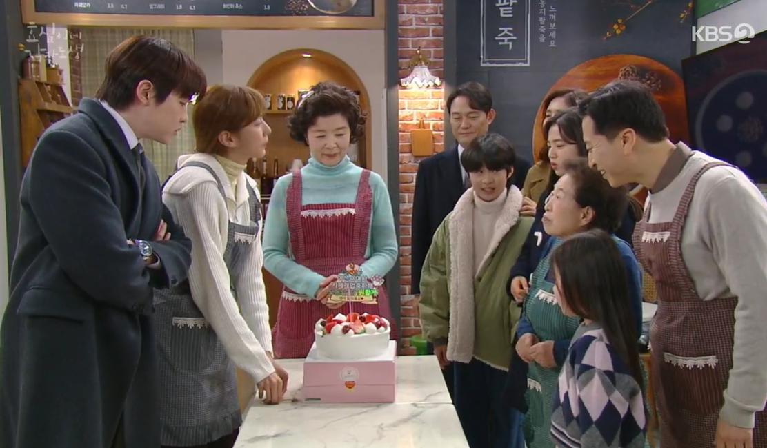 모두 왔는데 효준만 빠진채 결국 기다리다가 개업축하 케잌에 불을 켜고 축하를 합니다.