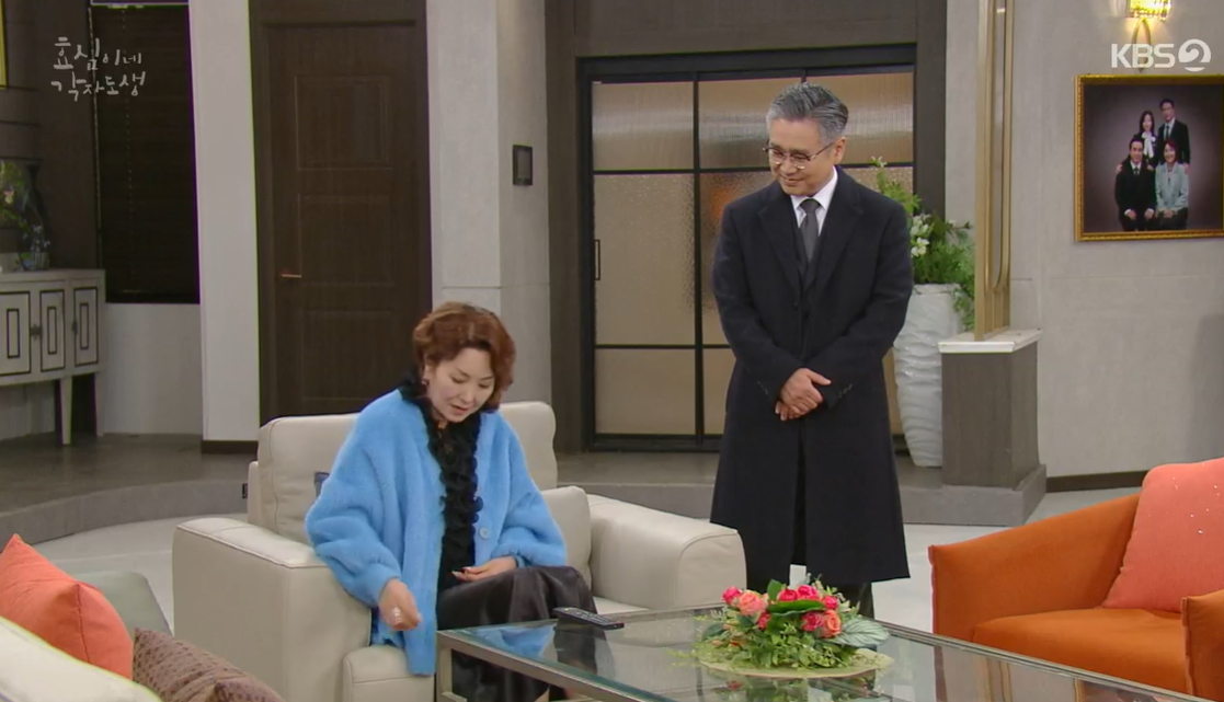 태희는 치킨집에 손님이 맞아 바쁜상황인데 효도는 동창회를 간다며 빼입고 나가서는 태산그룹 사무실에 가서 부회장이 된 태민을 만나려고 어슬렁 대고 있습니다.