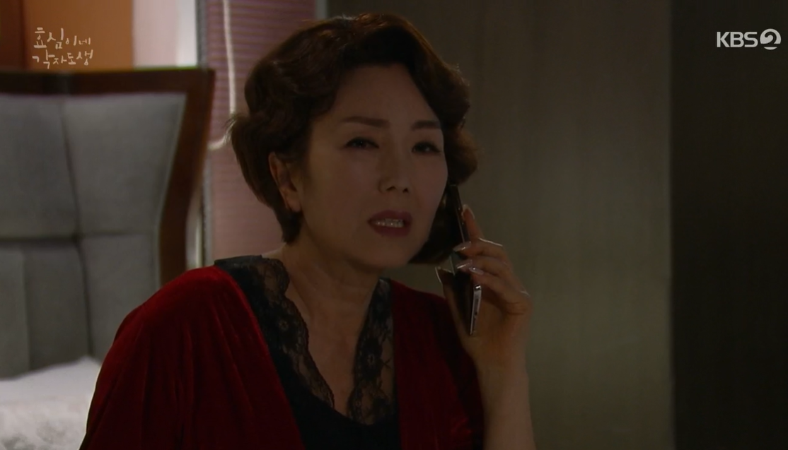 어머니한테 전화를 건 태민은 태희는 파리에서 잘 지내냐며 엄마를 떠보는데 아무것도 모르는 숙향은 되려 파리에서 잘 지내걸라며, 태희때문에 속상하다고 푸념을 합니다. 할머니 이야기를 꺼내자 죽은 할머니가 자신의 꿈에 나타나 태민이 이혼하는 것 때문에 자신을 노려봤다고 거짓말을 하는 숙향.