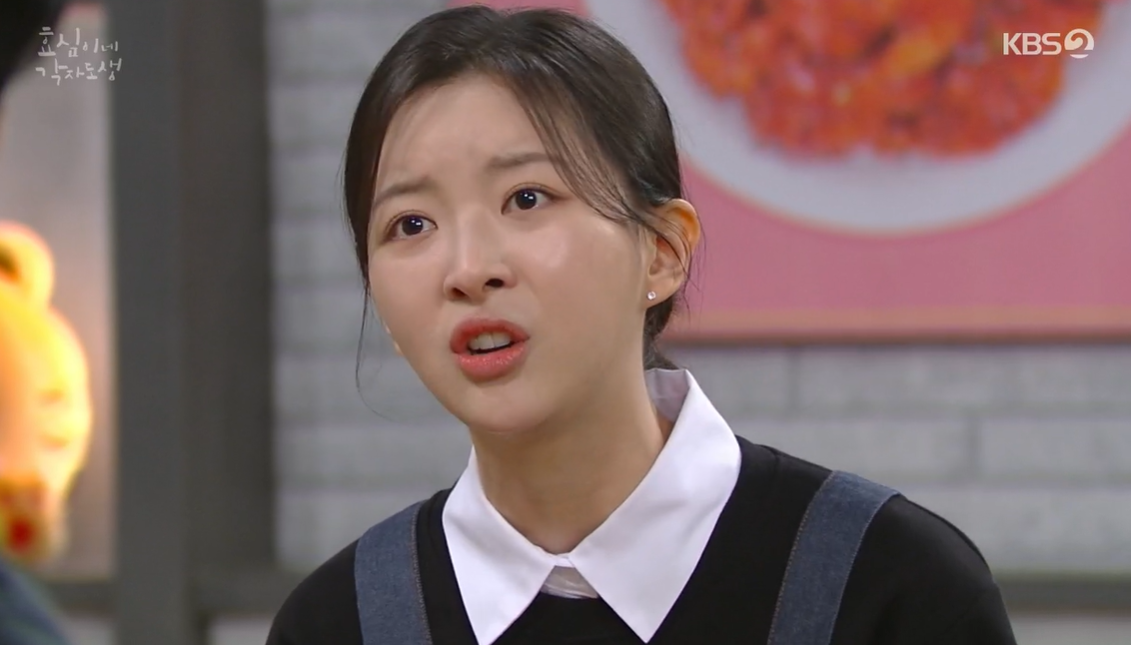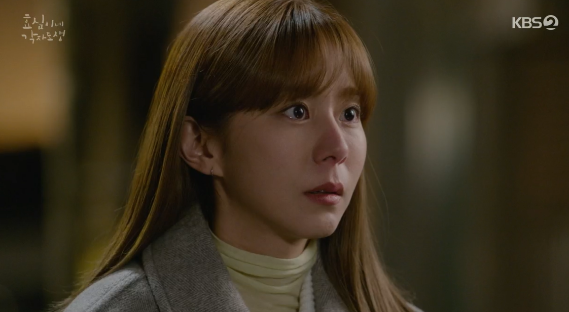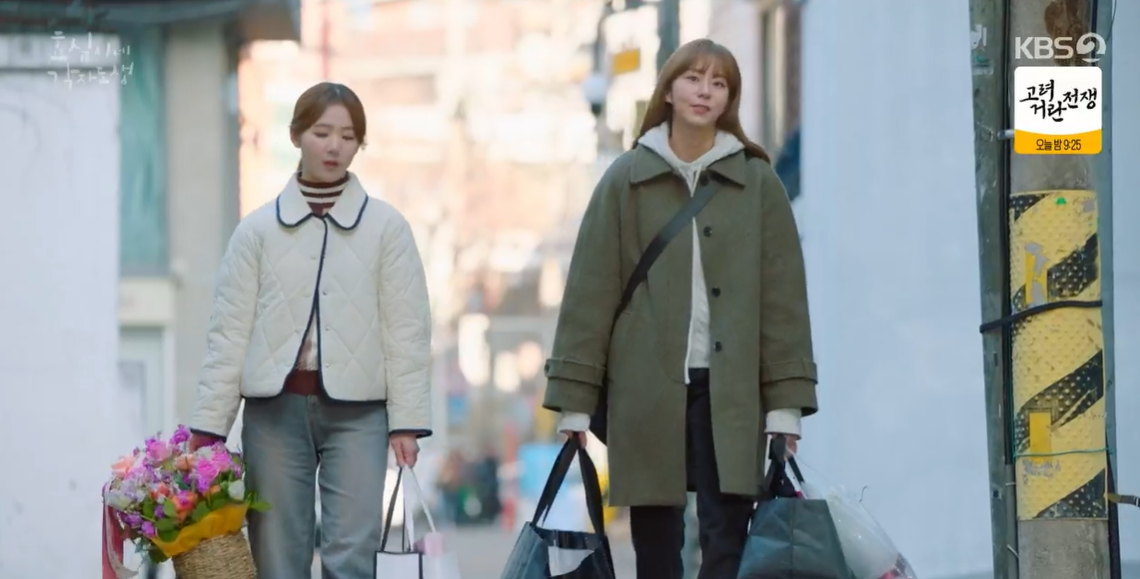효심이 조금 진정이 되자 다시 현실이야기로 돌아와 말다툼을 시작한 모녀. 선순은 독립하니 좋냐며 볼멘소리를 하고 효심은 무작정 카페를 차린 선순을 걱정합니다. 앞으로는 각자도생이니 다음부터는 약 발라주면 약값도 받을거라며 모진소리를 합니다.