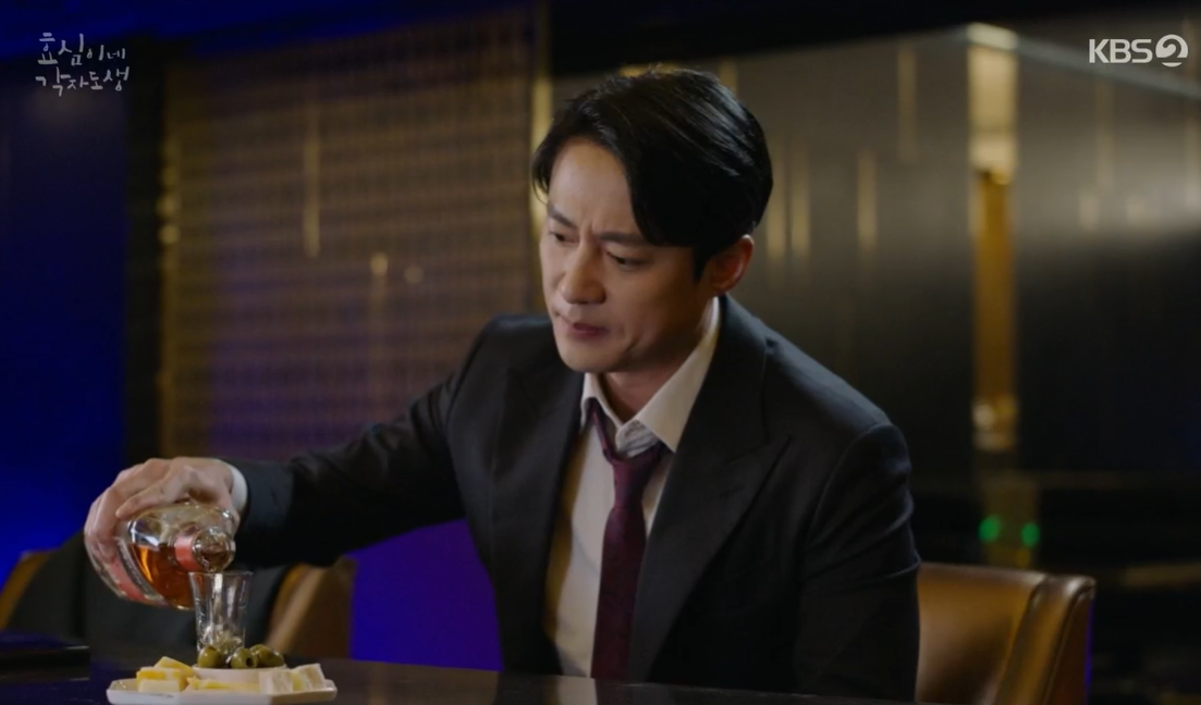 숙향의 거짓말에 대해 알게된 태민은 괴로워 하면서 혼자 술을 마십니다.