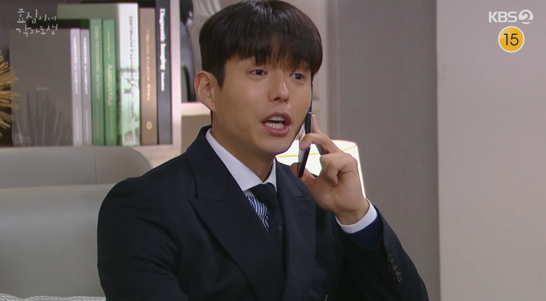 태호와 통화를 마치자 마자 희주한테 걸려온 전화. 루비 올케어반 등록하고 필립 골프채 바꿔줘야 하는데 월급이 안들어 왔다는 아내희주에게 효성은 알아보겠다고 답하며 서둘러 통화를 마칩니다.