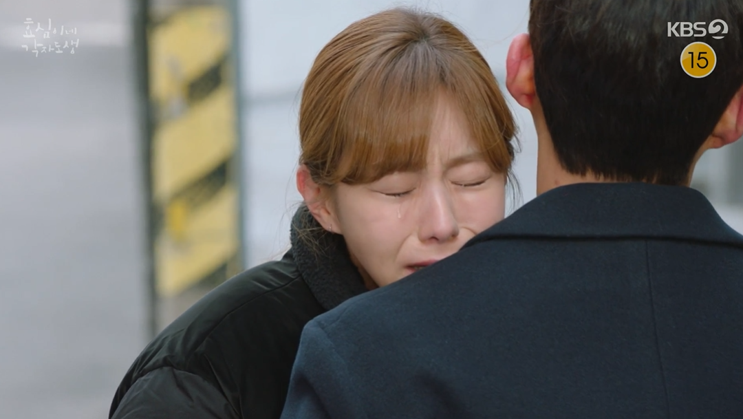 외출했다가 돌아온 효심은 자신의 집앞에 앉아 기다리고 있는 태호를 발견하고는 달려가 안겨서 눈물을 흘립니다.