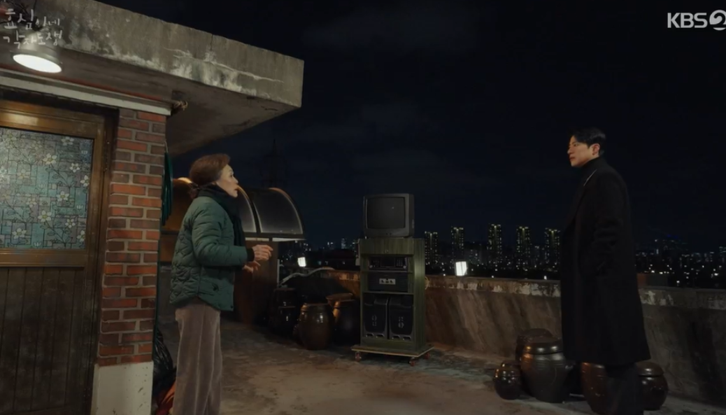 결혼 허락받을 생각에 기분좋게 집에 들어온 효심과 태호는 들어오자마자 화가나있는 선순한테 나가! 라는 고함을 듣게 되고, 분위기를 보고 효심은 서둘러 태호를 옥탑 할머니한테 가있으라며 올려보냅니다.