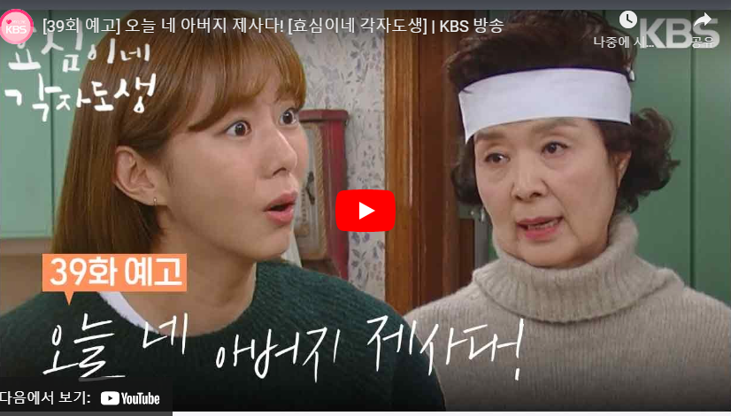 목차 효심이네 각자도생 39회 줄거리 명대사& 명장면 효심이네 각자도생 39회 줄거리 핵심요약 & 엔딩 ▶ 영상보기 [ ] ㄴ 등장인물 & 인물관계도 효심이네 각자도생 몇부작, 등장인물(출연진), 인
