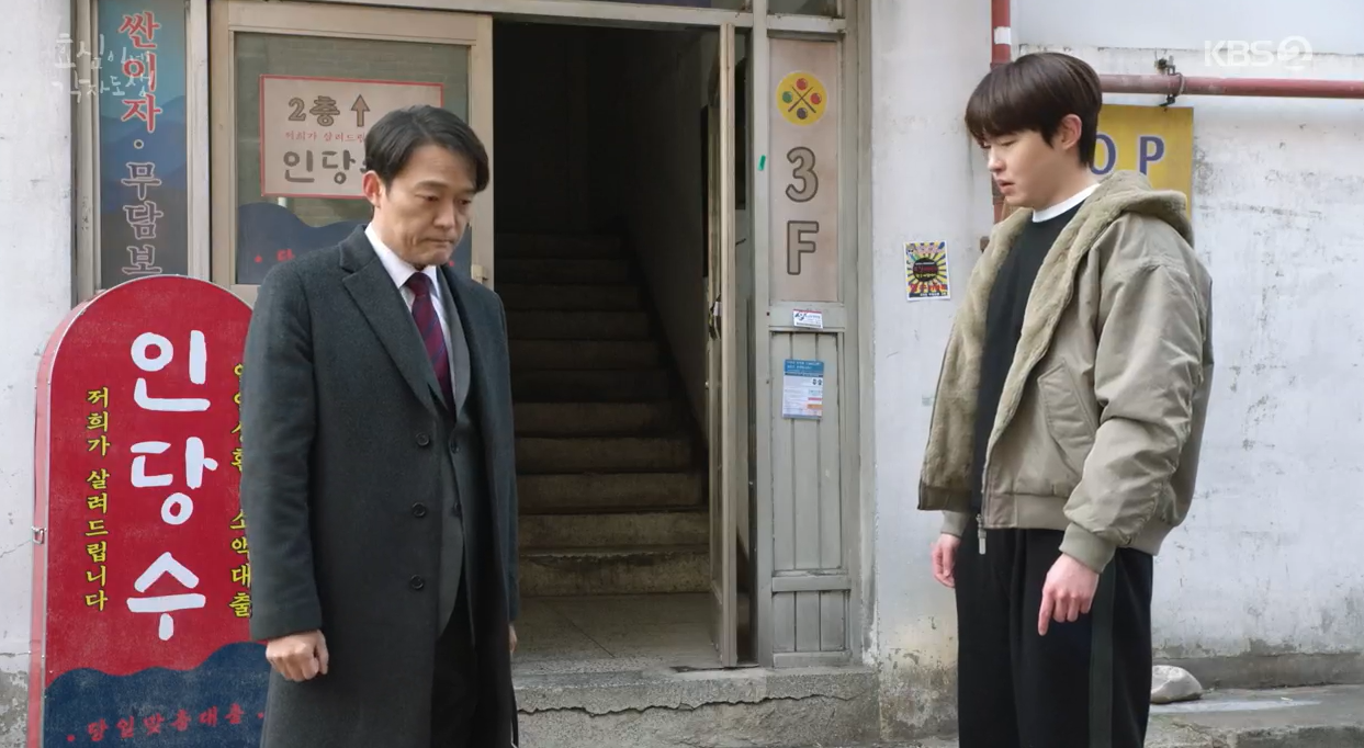 인당수에서 나오는 길에 하필 효도를 마주친 효성. 효도는 학원비 때문에 딱 한번 도움받았다는 효성에게 학원을 끊으라며 화를 내고 속상해 합니다.  효도는 자신이 인당수 들락날락해봐서 안다며 여긴 사람이 올 곳이 아니라는 데 효성은 우리 각자 살자며, 효도의 입단속을 시키고 가버립니다.