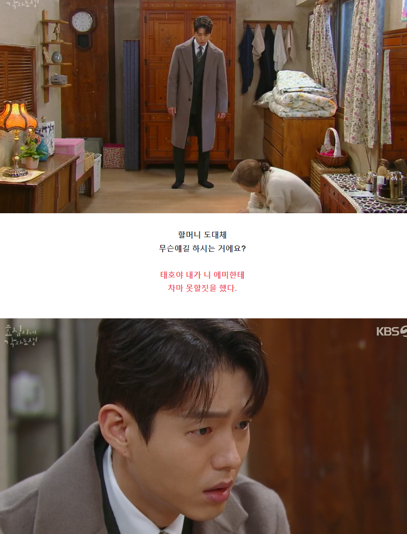 마침효심과 헤어지고 할머니를 찾았다가 할머니와 태민의 대화를 모두 듣게 된 태호는 당혹스러워 합니다.