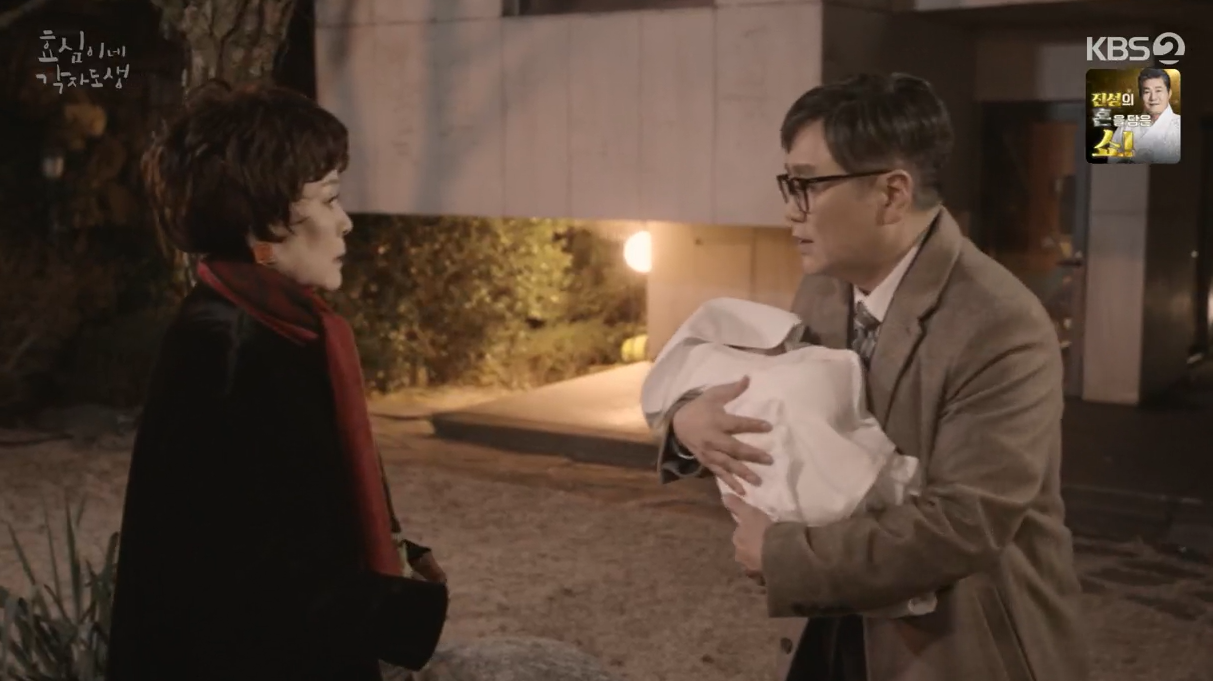오래전 최명희는 결혼후에도 오랫동안 아이를 못낳아 아버지한테 구박만 못난 장남으로 인해 집안의 위계 질서가 흔들리고 집안의 대가 끊길 것을 염려해서  둘째 부부가 출산한 첫아들을 큰아들네로 데려왔습니다. 당시1년간 해외에 있단 남편에게 조차 비밀로 하고 일을 벌였던 최명희.