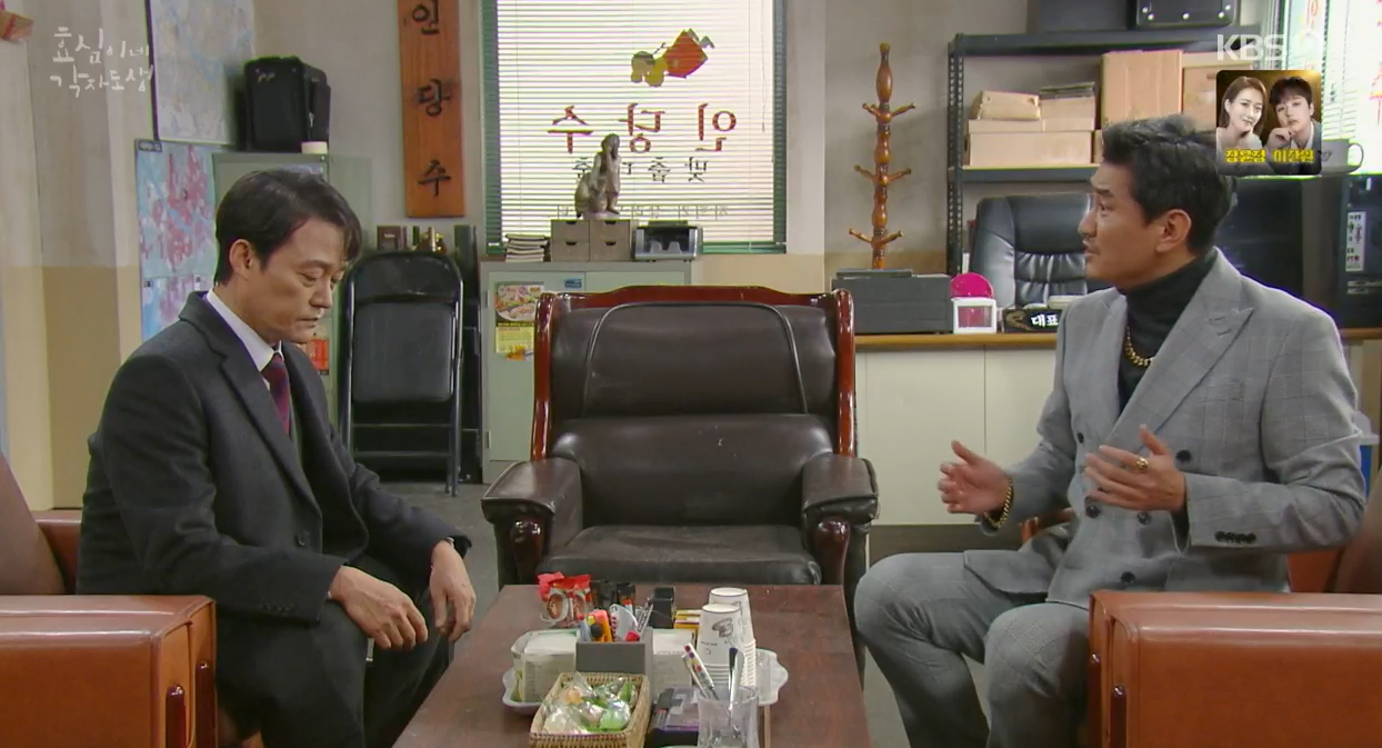 대기업 차장님이 왠일이라고 반기는 사채남. 결국 효성은 사채를 써서 루비 교육비를 보내줍니다.