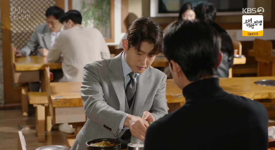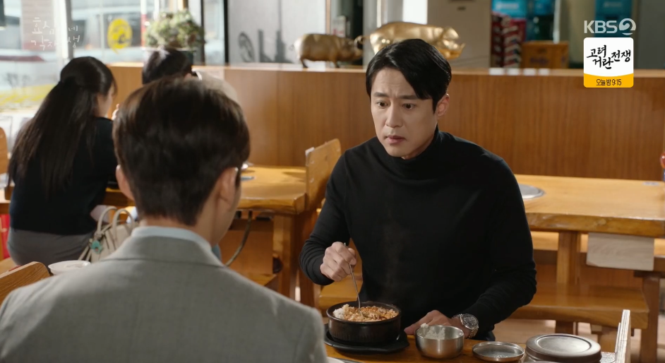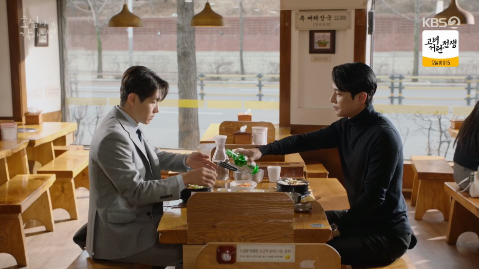 아침 식사를 하면서 반주까지 곁들이는 태민과 태호. 태호는 전에는 몰랐던 태민의 모습에 힐끗힐끗 살피는데 태민은 무심하게 그만 보라고 이야기 합니다.