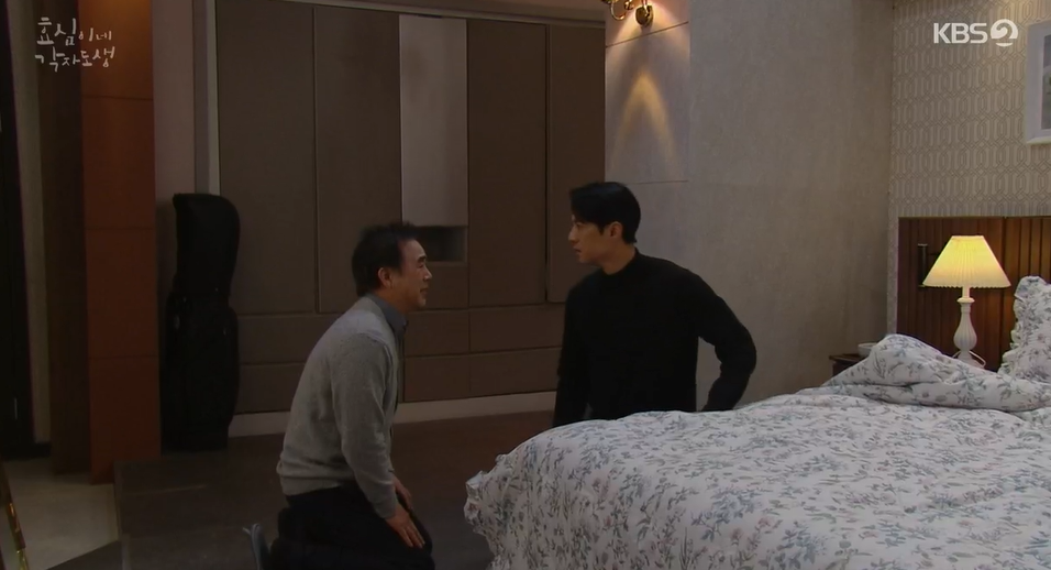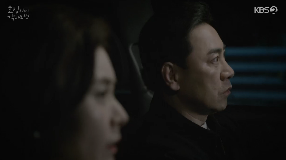 한숨돌리면서 각자의 가족이야기를 나누는 두사람. 태호는 태민이 아파쓰러져서 속상했다고 이야기를 하고, 효심은 아빠를 찾아다니면서 속상했던 마음을 털어놓습니다. 이렇게 가족이야기를 허심탄회하게 나눌수 있어서 좋은 두사람.