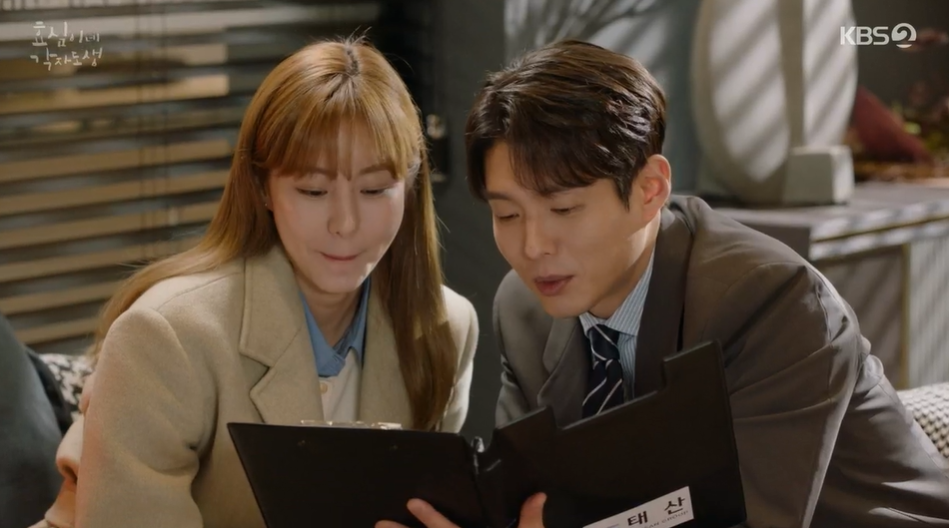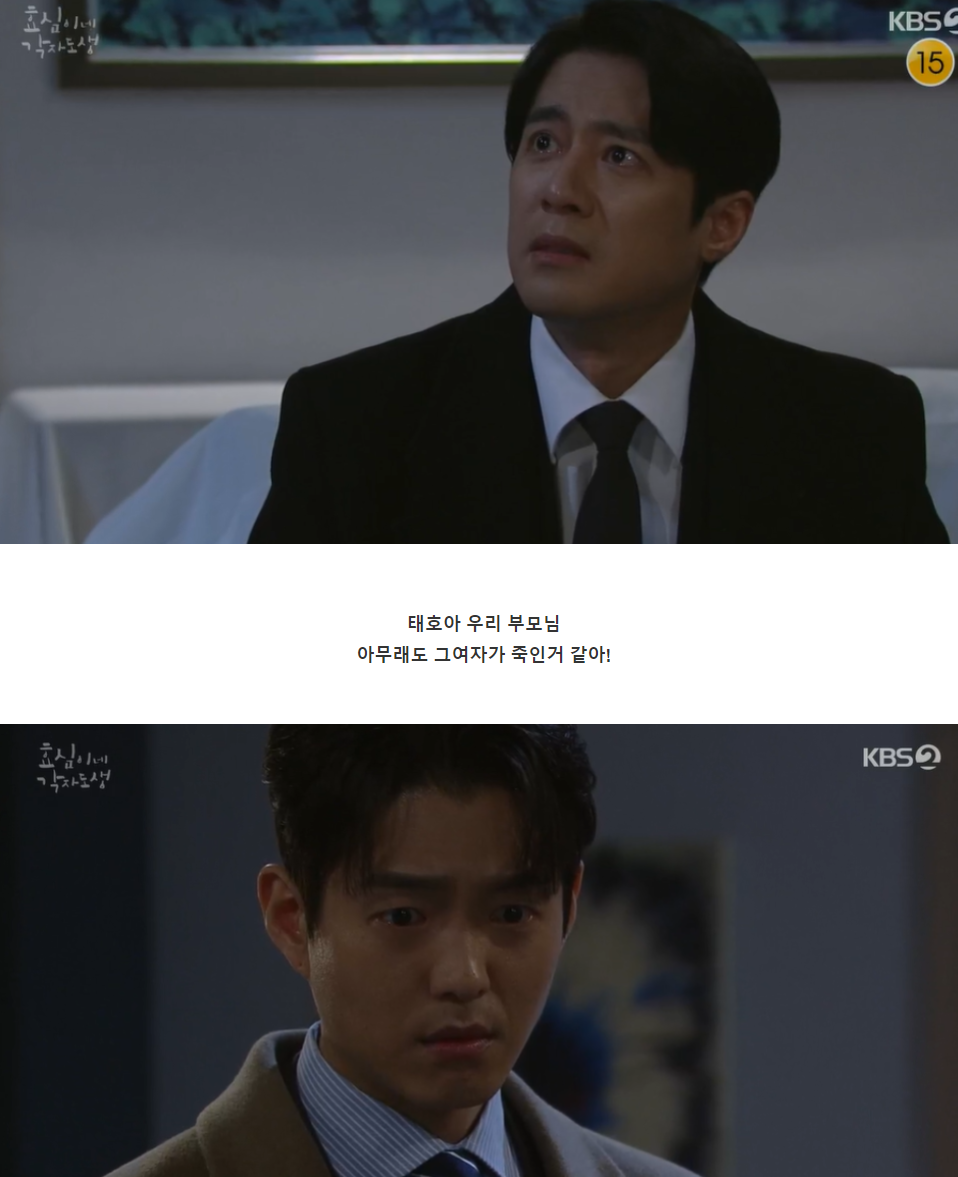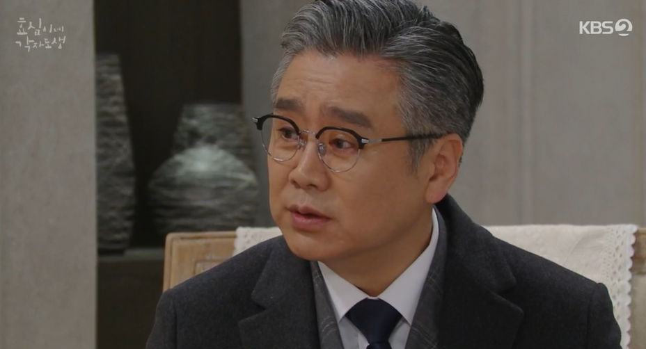 회사에 온 효심과 잠시 이야기를 나누는 효성은 어머니가 워낙 아빠와 차이나는 혼인을 했다가 고생한 기억때문에 더 반대를 하는 것 같다고 이야기 해줍니다. 실종된 아빠 이야기를 하는 효심에게 더이상 아빠를 찾지 않았으면 좋겠다는 효성. 아빠가 평생 혼자 살았을 거라고 생각하냐며 무언가 걱정스러운 듯 효심을 말립니다.