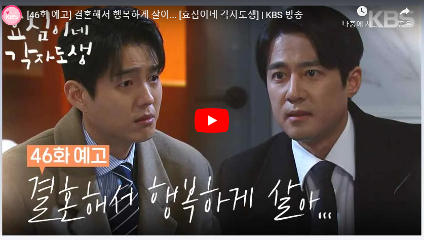 ▶ 이전 줄거리 보기 : 효심이네 각자도생 44회 줄거리, 45회 예고