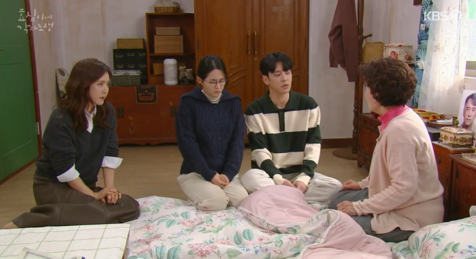 모두가 분위기를 살피는데, 어른보다 말 많이 한다며 혼나고 있는 태호. 감옥은 왜 갔다 왔냐며 단도직입적으로 태호에게 붇자 식구들이 나서서 말립니다. 끝순할머니와 박프로까지 태호를 반기는데 선순 혼자 심드렁 합니다.