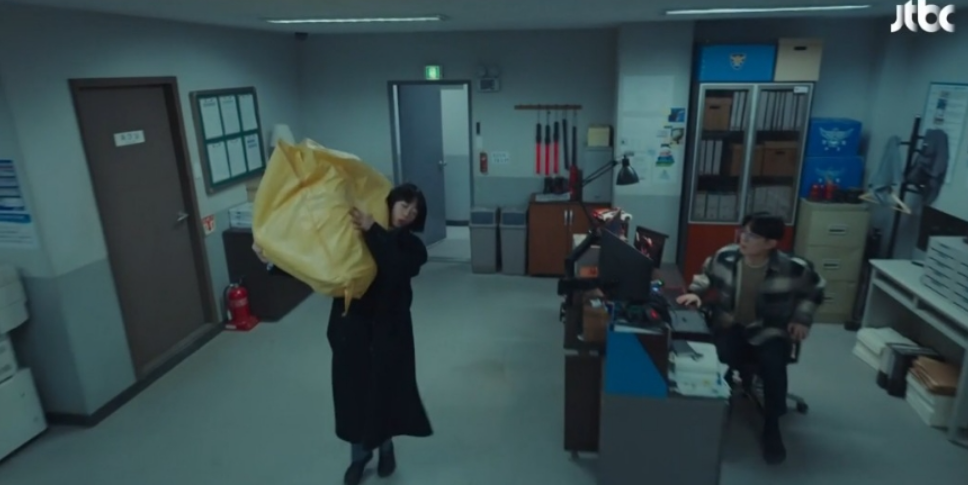 마침 문방구에서 주인이 자리를 비운사이 최박사를 마늘자루에 넣고 달려온 남순. 험하게 다룬 덕분에 최박사는 수사대에 도착하자마나 멀미로 구토를 하네요 ;;;