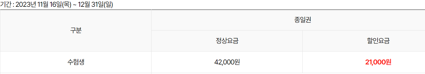 ▶종일권( 수험생 특별할인) : 18,500원