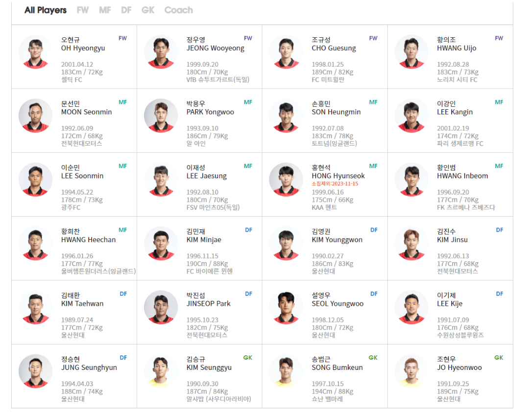 2026 FIFA 북중미 월드컵 대한민국 국가대표 선수명단