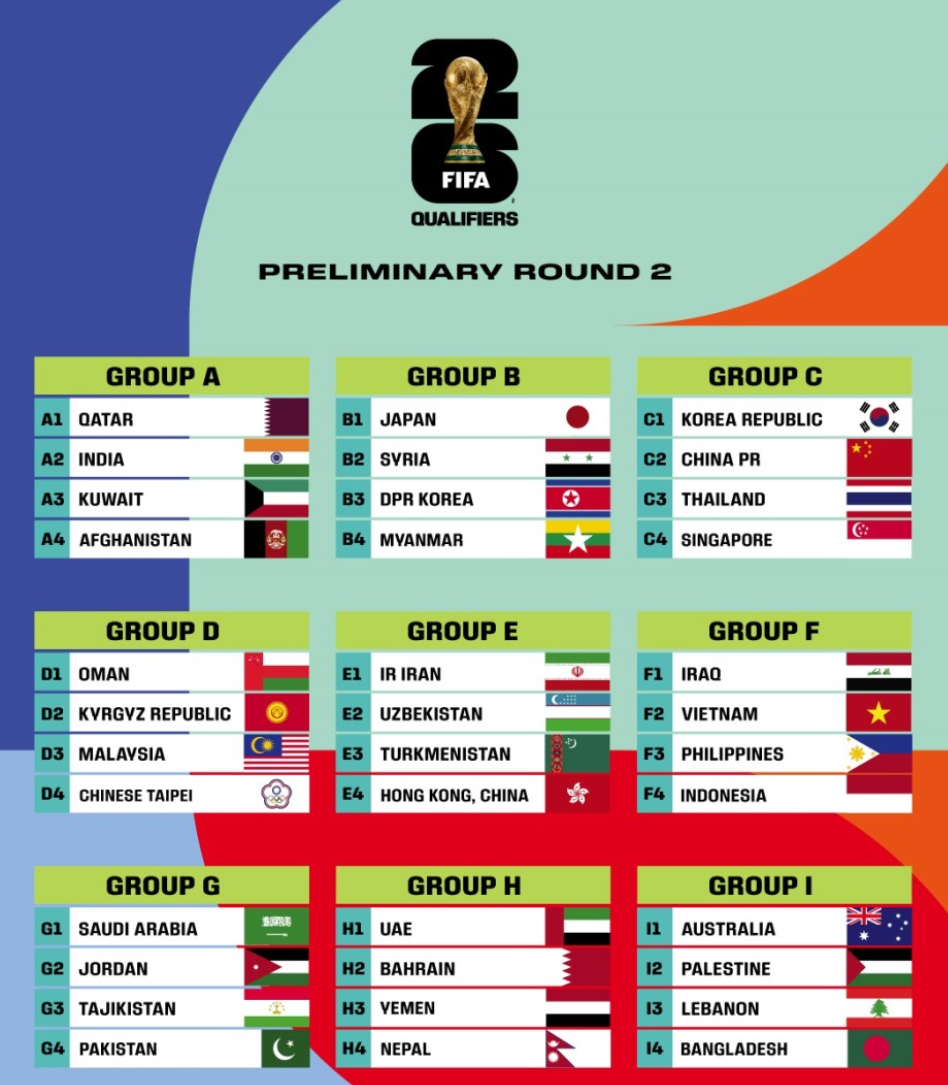 2026 FIFA 북중미 월드컵 2차예선 조편성 및 조별 순위