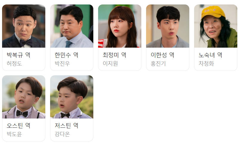 도도희(김유정), 정구원(송강), 주석훈(이상이), 주천숙( 김혜숙), 진가영(조혜주), 노석민(김태훈), 김세라(조현희), 노수안(이윤지), 노도경(강승호), 신비서 (서정연), 박복규(허정도), 한민수(박진우), 최정미(이지원), 이한성(홍진기), 노숙녀(차정화), 오스틴(박도윤), 저스틴(강다은)